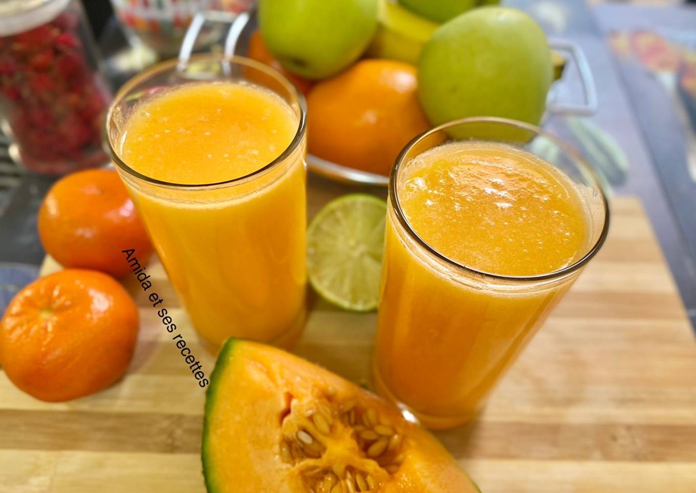 - Bien nettoyer les fruits,découper le melon et mettre la chair dans un Blender,ajouter les pulpes de mandarine et un peu d’eau. Mixer le tout. Faire passer dans un chinois pour enlever le reste de fibres. Mettre dans une carafe, sucré puis boire frais..