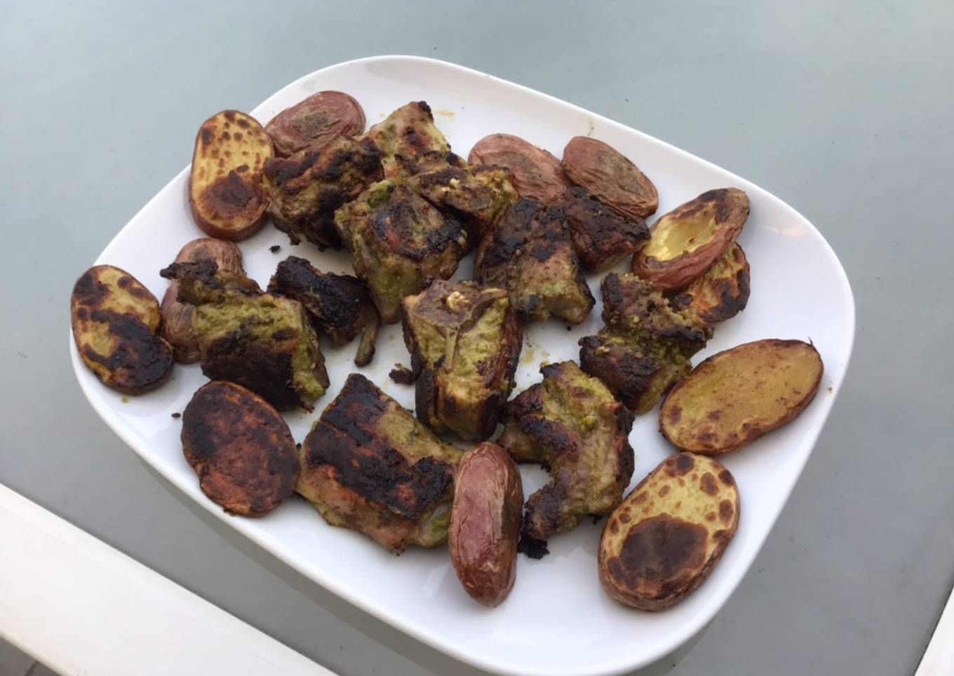 Chevreau mariné grillé façon travers et ses pommes de terre
