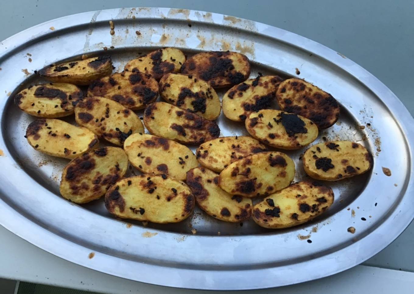 - Couper les pommes de terre dans le sens de la longueur badigeonner de marinade les faces coupées