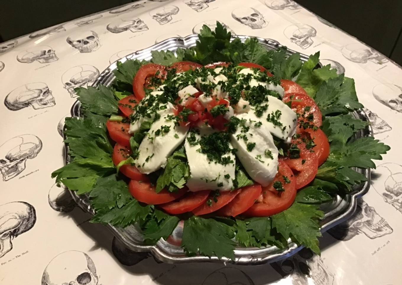 Salade de céleri branche aux tomates,mozzarella di buffala et persil
