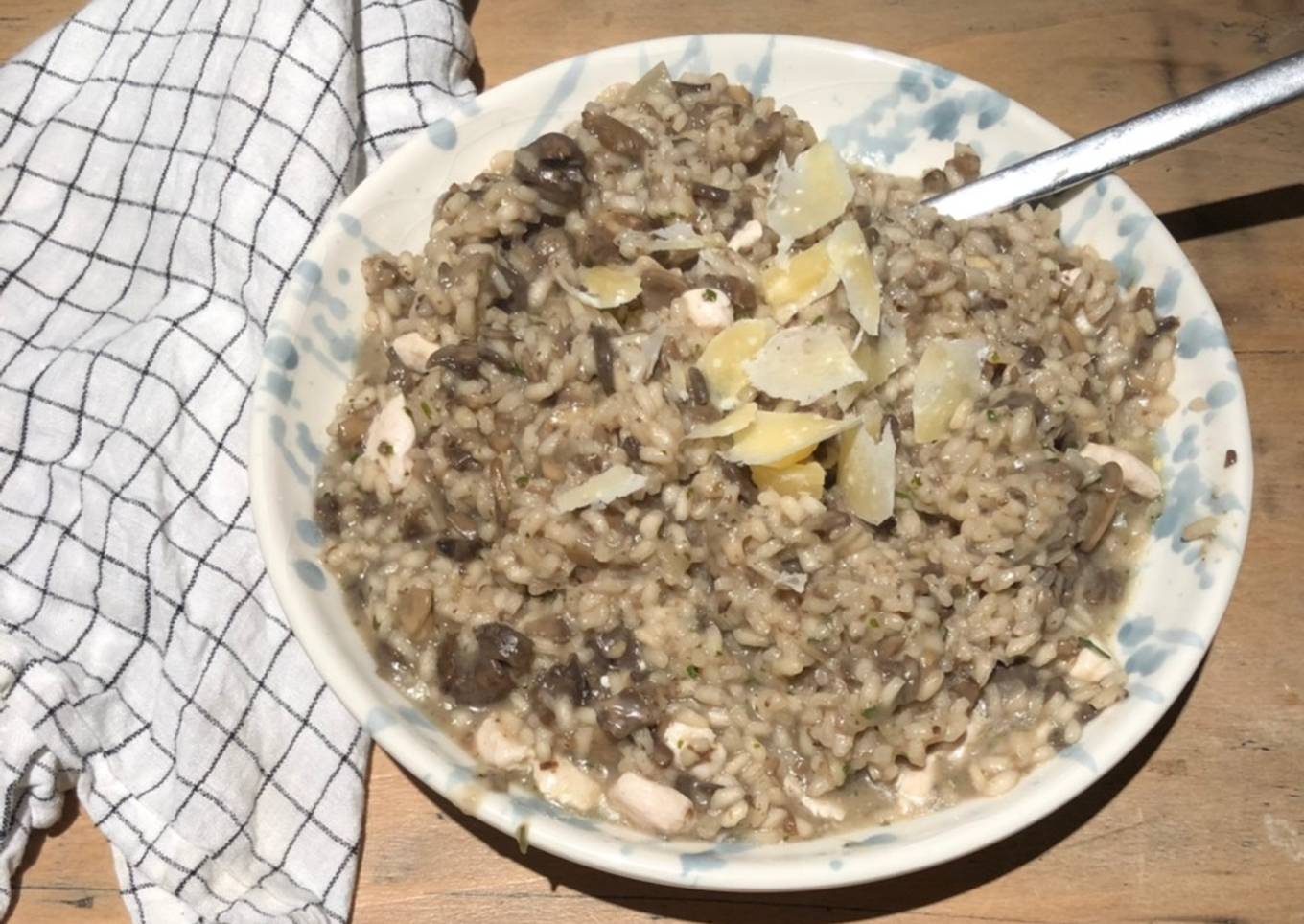 Ingredients and spices that need to be Get to make Risotto poulet et champignons: